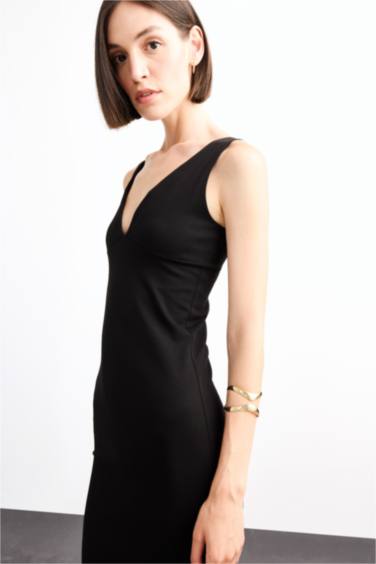 Bu V yaka kolsuz midi elbise, temiz hatlar ve basit detaylarıyla minimalist tarzın en samimi temsilcisidir. Klasik bir kesimle donatılmış bu elbise, sadece giyildiğinde dikkat çeken, aynı zamanda her gün kullanıma uygun bir formül sunar. Uzun gövdeli tipler için idealdir çünkü vücut hatlarını yumuşakça vurgular ve uzunluk oranı ile dengeli bir görünüm sağlar. Beyaz tisörtle ve yüksek bel jeans ile kombinleme, gündüz saatlerinde rahat ama zarif bir hava yaratır. Aynı elbiseyi siyah bir blazerin altına alarak ofis-sonrası bulușmalarda da şıklıkla taşınabilirsin. Siyah deri kemer ve beyaz sneaker ile tamamlayarak modern bir kontrast yaratabilirsin. Elbise, katlanmadan asılı tutulmalı ve iç katman olarak da kullanılabilir; bu sayede farklı mevsimlerde yeniden canlanabilir.