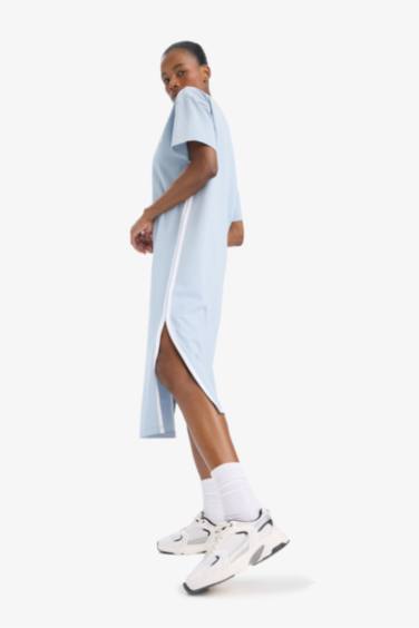 NBA Los Angeles Lakers Bisiklet Yaka Yırtmaçlı Pike Spor Midi Elbise