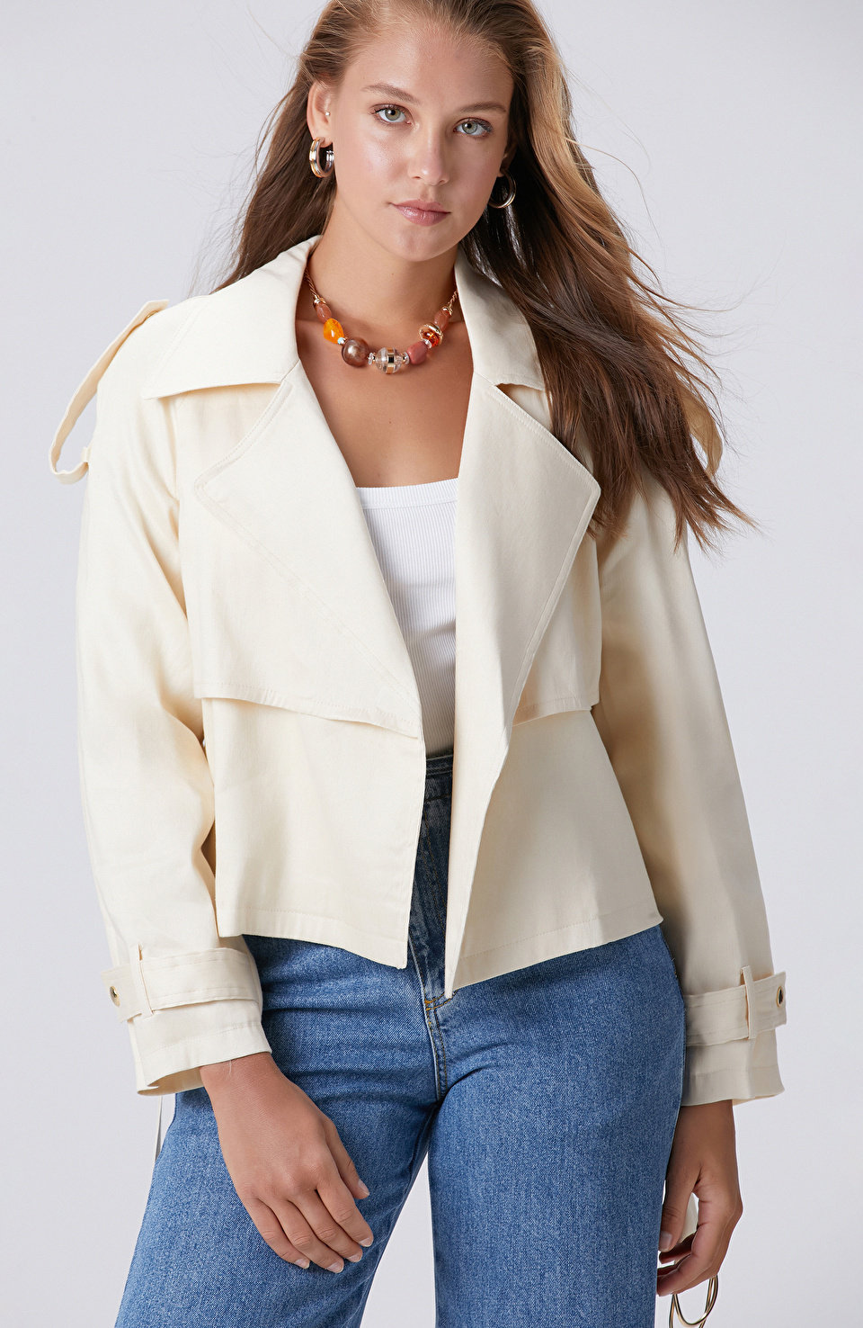 Şampanya rüzgarlık detaylı mont, temiz hatlar ve minimalist estetikle bir araya gelince, günlük hayatın en zorlu anlarında bile zarif görünmeyi mümkün kılan bir parçadır. Uzun govdeli tipler için idealdir çünkü vücut hatlarını dengeler ve hafifçe uzatıcı etki yaratır. Klasik bir beyaz tisortla ve yüksek belli siyah jeans ile kombinleyerek ofis-sonrasi bulusmalarda şık bir hava yaratabilirsin. Aynı zamanda bej renkli bir efsane pantolonla ve açık topuklu ayakkabıyla da rahatça gece kıyafetine dönüştürülebilir. Altın tonu aksesuarlarla renklerini canlandırarak daha dikkat çekici hale getirebilirsin. Katlanmadan asmali, nemli ortamlardan uzak tutarak uzun ömürlü kalmasını sağlayabilirsin. İç katman olarak da kullanılabileceği gibi, bahar ve sonbahar aylarında dışarıda yürüyüşlerde de mükemmel bir koruma sunar.