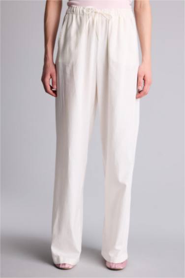 Wıde Leg Beli Lastikli Keten Karışımlı Pantolon