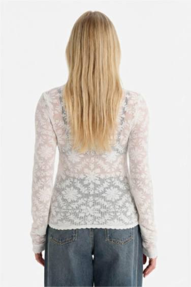 Slim Fit Dar Kesim Balıkçı Yaka Desenli İnce Triko Kazak