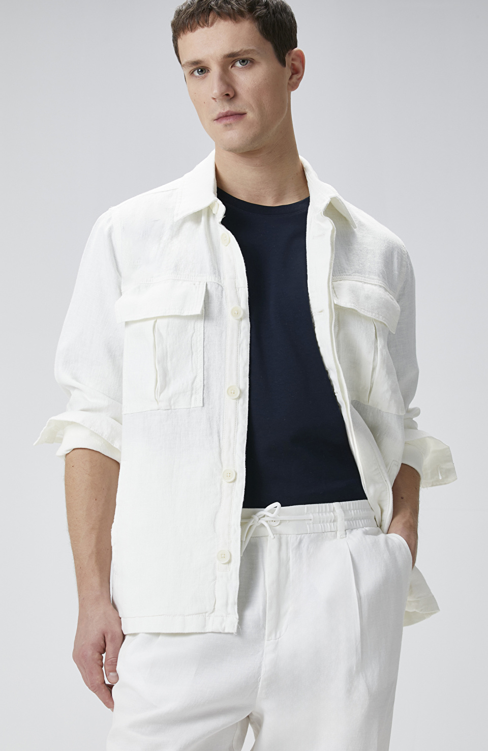 Ekru Keten Dış Gömlek
