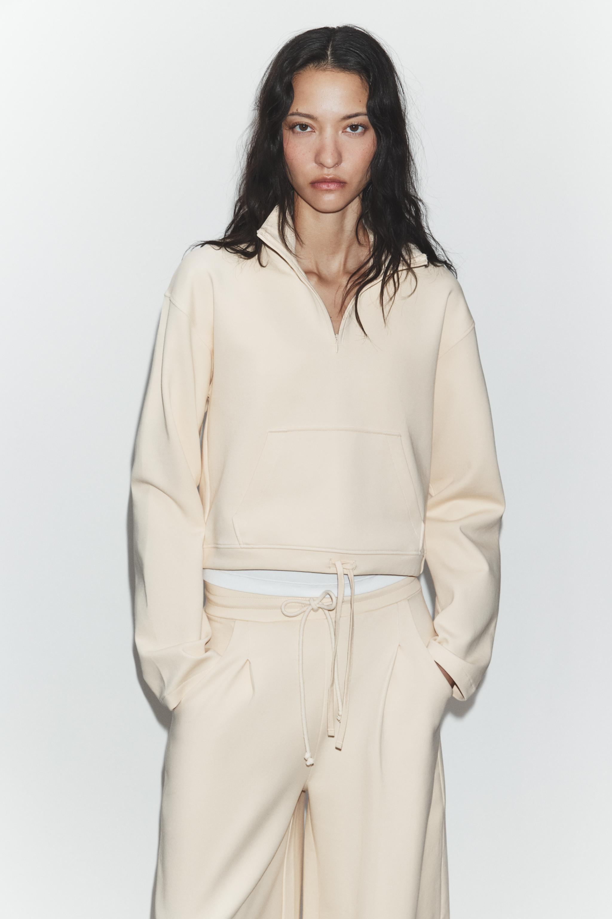 Ajurlu **Ipekyol** triko ile **Stradivarius** siyah geniş paça pantolonun minimalist uyumu — üzerine **Network** süet sneaker tamamlıyor.