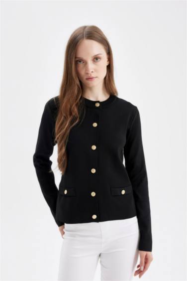 Bisiklet Yaka Basic Düz Düğmeli Cepli Triko Hırka