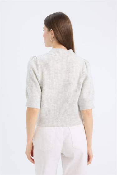 Fitted V Yaka Düğmeli Kısa Kollu Triko Hırka