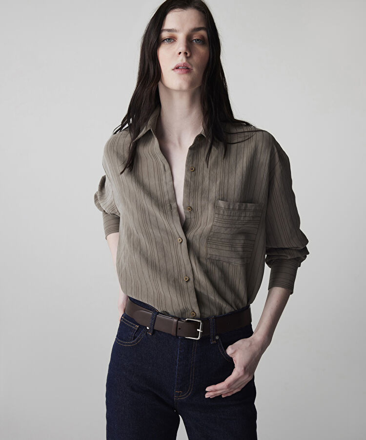 Çizgi jakarlı gömlek