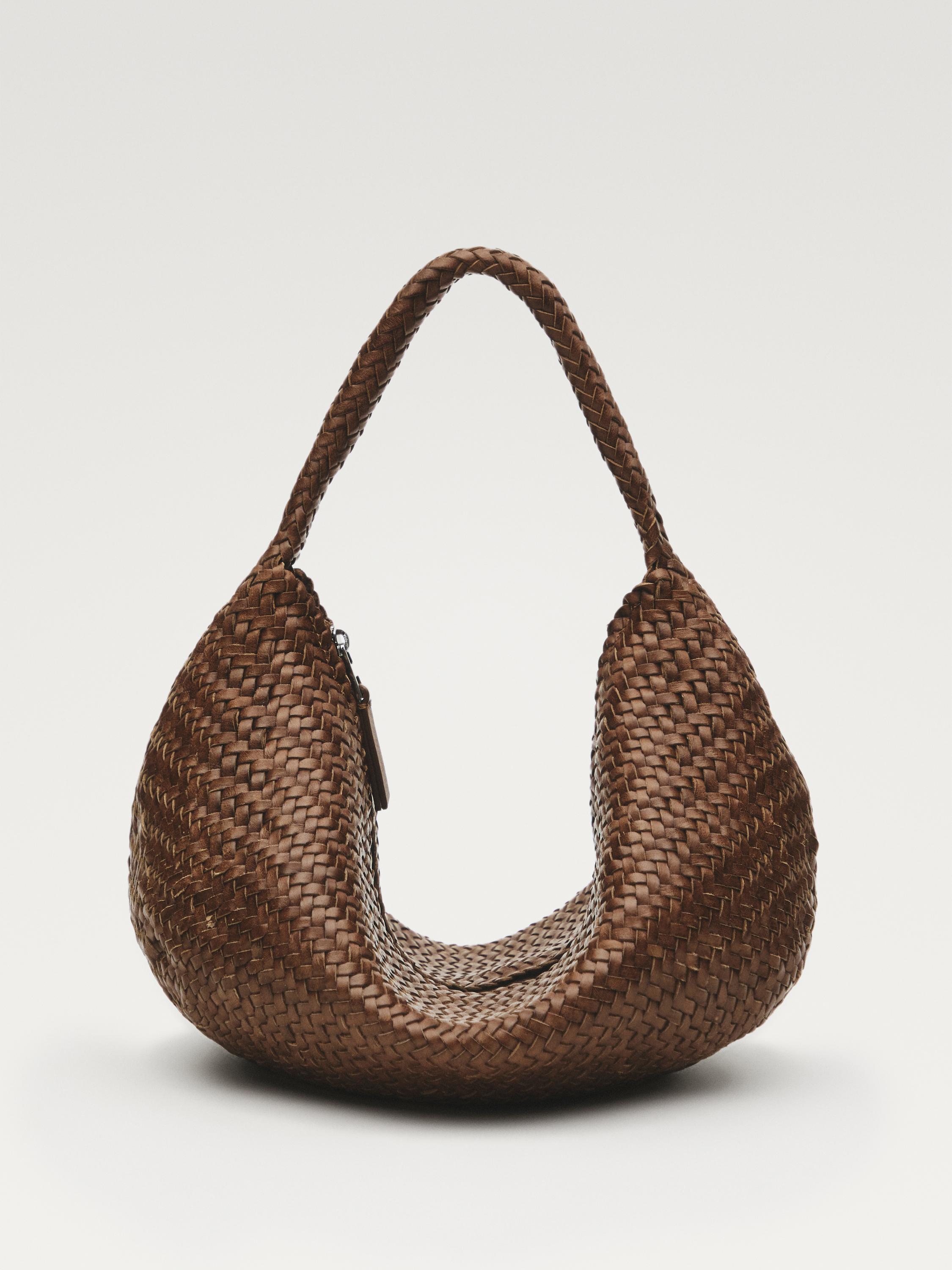 Bu örgülü deri hilal çanta, temiz ve sade bir estetikle dikkat çeken bir aksesuar. Yüzeyindeki dokusu ve hafif kıvrımlarıyla hem doğal hem de zarif bir dengenin sembolü. Uzun govdeli tipler icin idealdir; cinsiyetsiz ve zamanın dışına çıkan bir formu, vücut hatlarını rahatlatır. Gündelik kullanım için beyaz tisortle ve yuksek bel jean ile kombinle; aynı zamanda ofis-sonrasi bulusmalarda da şık bir görünüm sunar. Sıcak mevsimlerde açık kollu bluzlarla veya kışın kalın bir kazak altına takarak mevsimsel olarak uygun hale getirebilirsin. Kahverengi rengi, notr tonlara uyum sağlar; siyah deri kemer ve beyaz sneaker ile tamamlayarak modern bir görünüm elde edebilirsin. Çantayı katlanmadan asmali, iç katman olarak da kullanabilirsin. Her gün taşıyabileceğin, uzun ömürlü ve dikkat çekmeyen ama her an farkında olunan bir parca.
