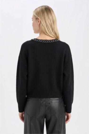 Oversize Geniş Kalıp V Yaka Triko Kazak