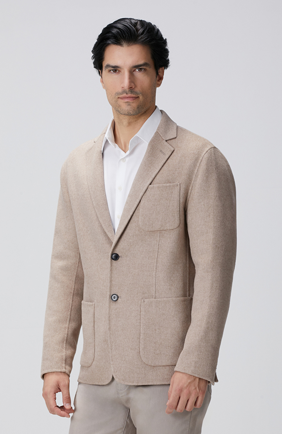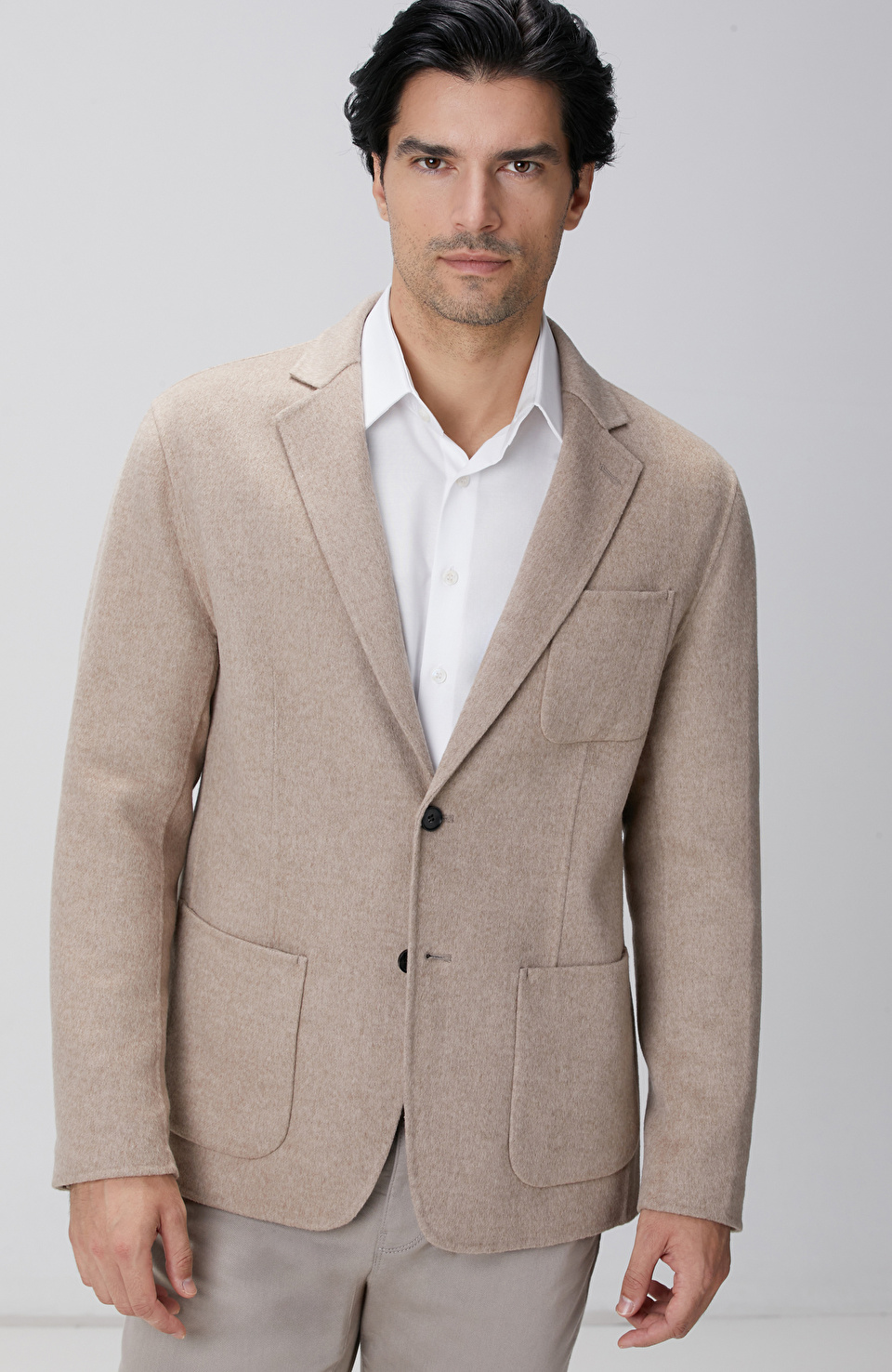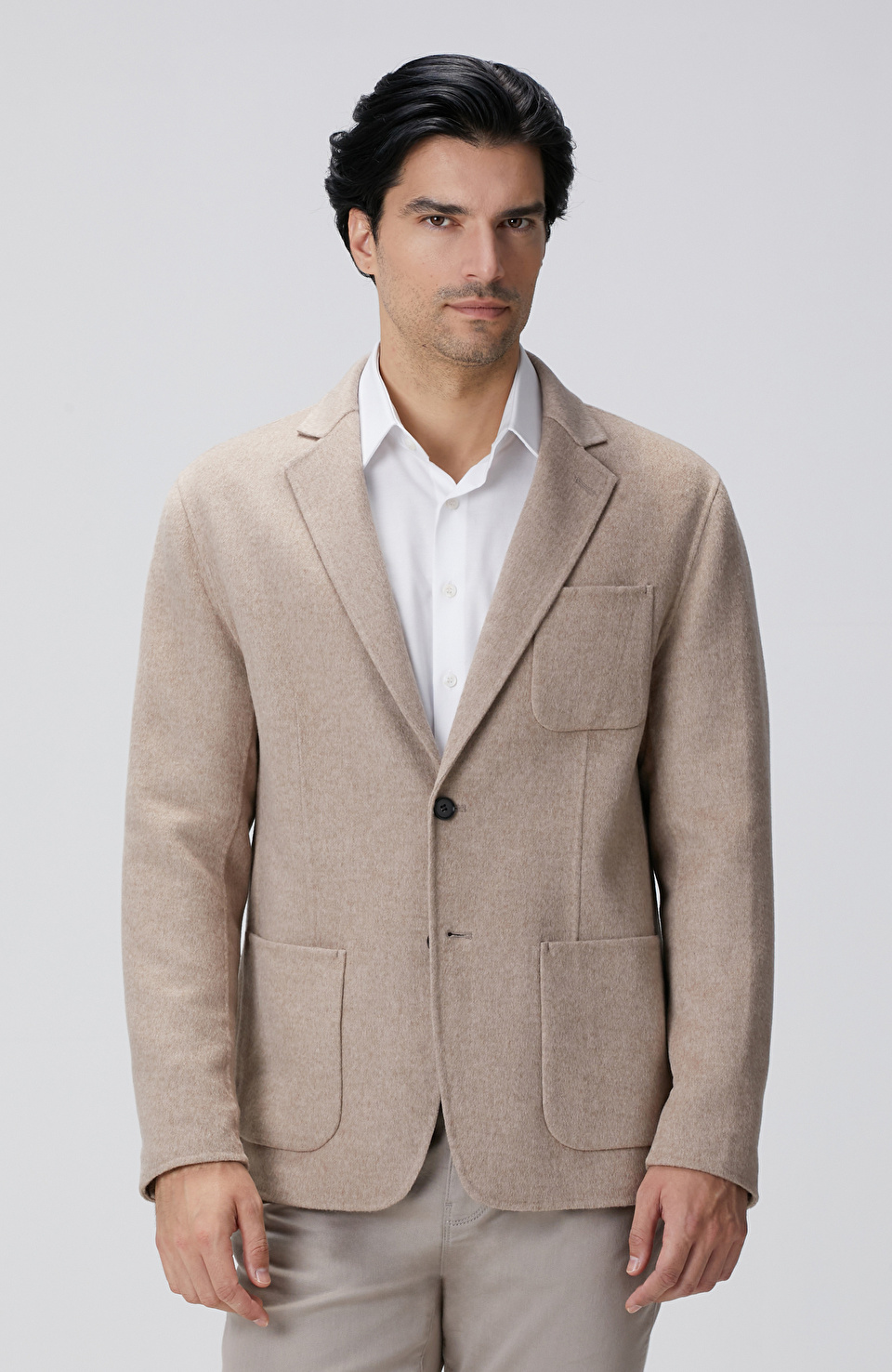 Bej Yün Karışımlı Dikişsiz Handmade Ceket