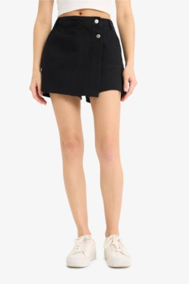 Yüksek Bel Cepli Mini Jean Şort Etek