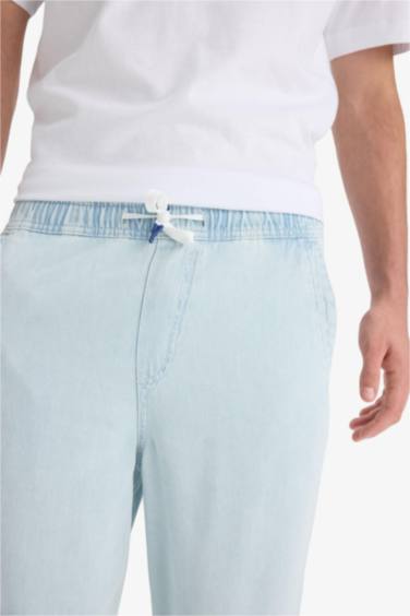%100 Pamuk Wide Leg Beli Bağcıklı Lastikli Geniş Paça Jean Pantolon