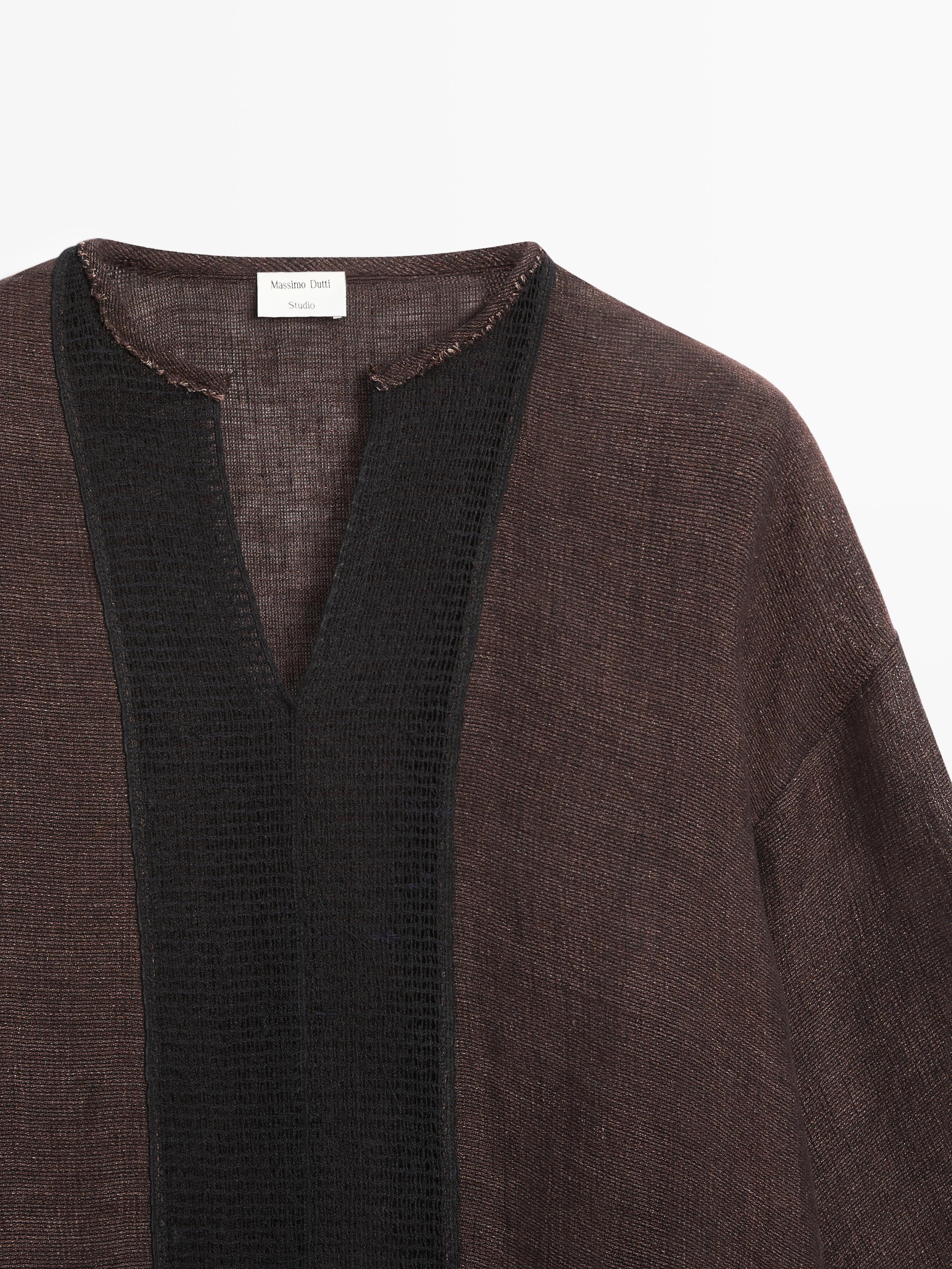 Bu dantel şeritli dökümlü keten karışımlı bluz, temiz ve sade bir estetikle klasik detayları modern bir şekilde harmanlayan, her zaman hafifçe dikkat çekmeyi başaran bir parçadır. Uzun govdeli tipler için idealdir çünkü dökümlü kesimi vucudun dengesini sağlar; genis omuzlari dengelemek icin de cok uygun. Kombinleme konusunda esneklik sunar: beyaz tisortle ve yuksek bel jean ile rahat bir günlük look olusturabilirsin; aynı zamanda siyah pantolonla da daha ciddi bir ofis-sonrasi bulusmasi icin uygun bir secim olabilir. Renk olarak kahverengi ve siyah secenekleriyle hem klasik hem de bohemian tarzda kullanilabilir. Siyah deri kemer ve beyaz sneaker ile tamamlayarak basit ama dikkat cekici bir gozum olusturabilirsin. Daha zarif bir hale getirmek istersen, yari kapali bir mavi etekle kombinleyebilir, incelikli aksesuarlarla ekstra bir dokunuş katabilirsin. Bakimi kolay, katlanmadan asmali, iki katli bir kumas oldugu icin iki katli giyimde de kullanilabilir. Her mevsimin karsisinda yer alabilecek, uzun ömürlü ve çok kullanilabilir bir parça.