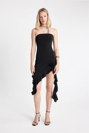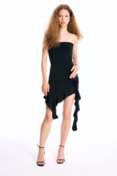 Straplez Asimetrik Mini Abiye Elbise