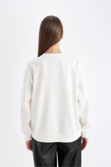 Relax Fit Bisiklet Yaka Baskılı İnce Sweatshirt