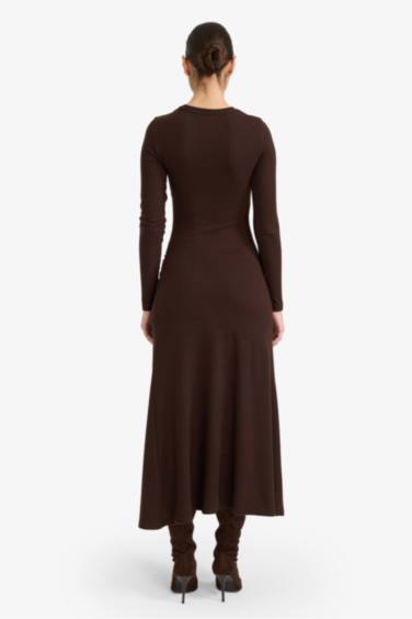 Bisiklet Yaka Yırtmaçlı Uzun Kollu Midi Elbise