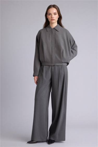 Brown-tonlu **Kumaş mix colorblock gömlek**, burgundy **Belden bağlamalı wide leg fit pantolon** ve brown **Suni deri babuç** ile dengeli, rahat ama etkili bir kombin.