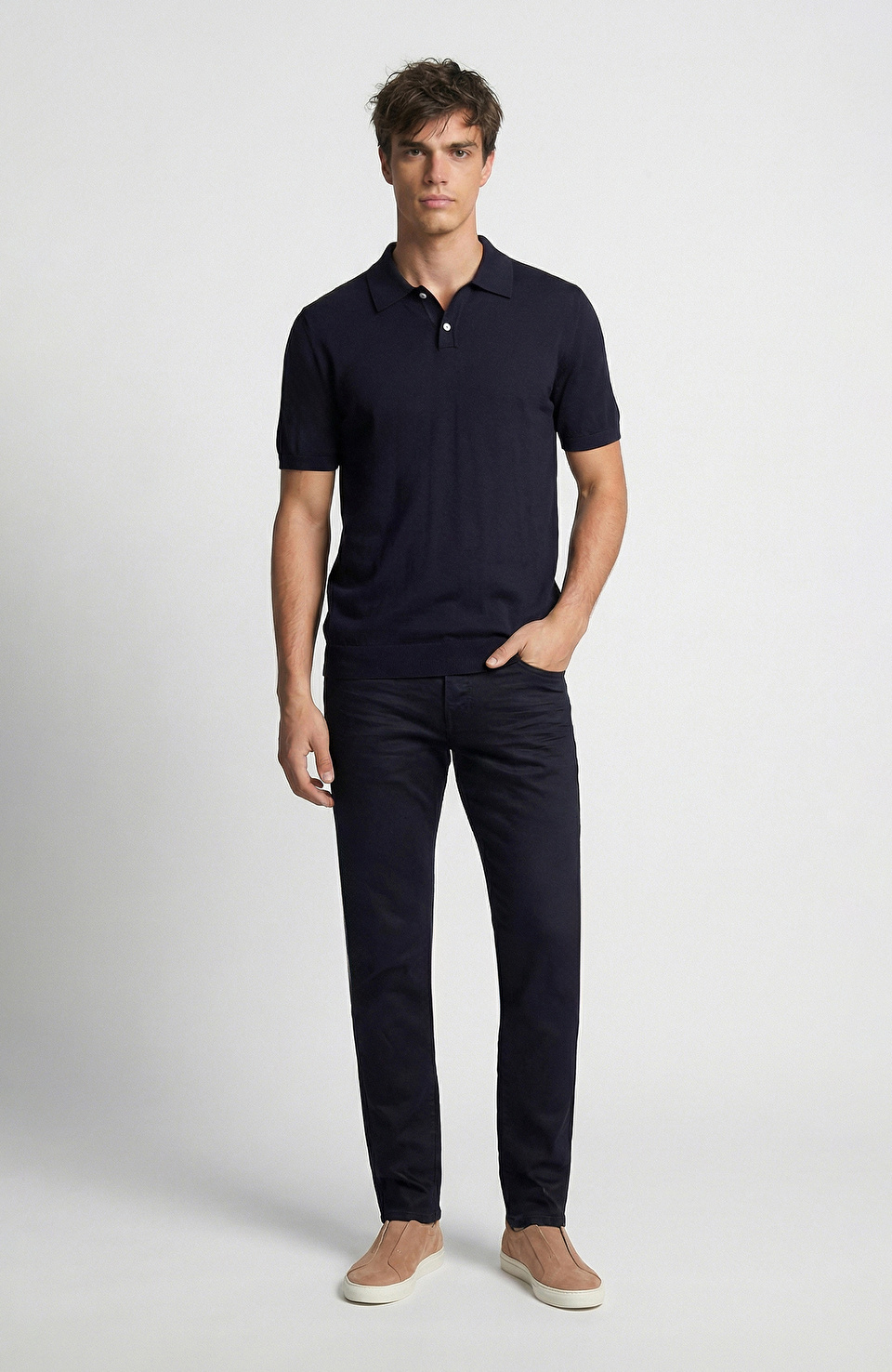 Lacivert Kaplamalı Denim Pantolon