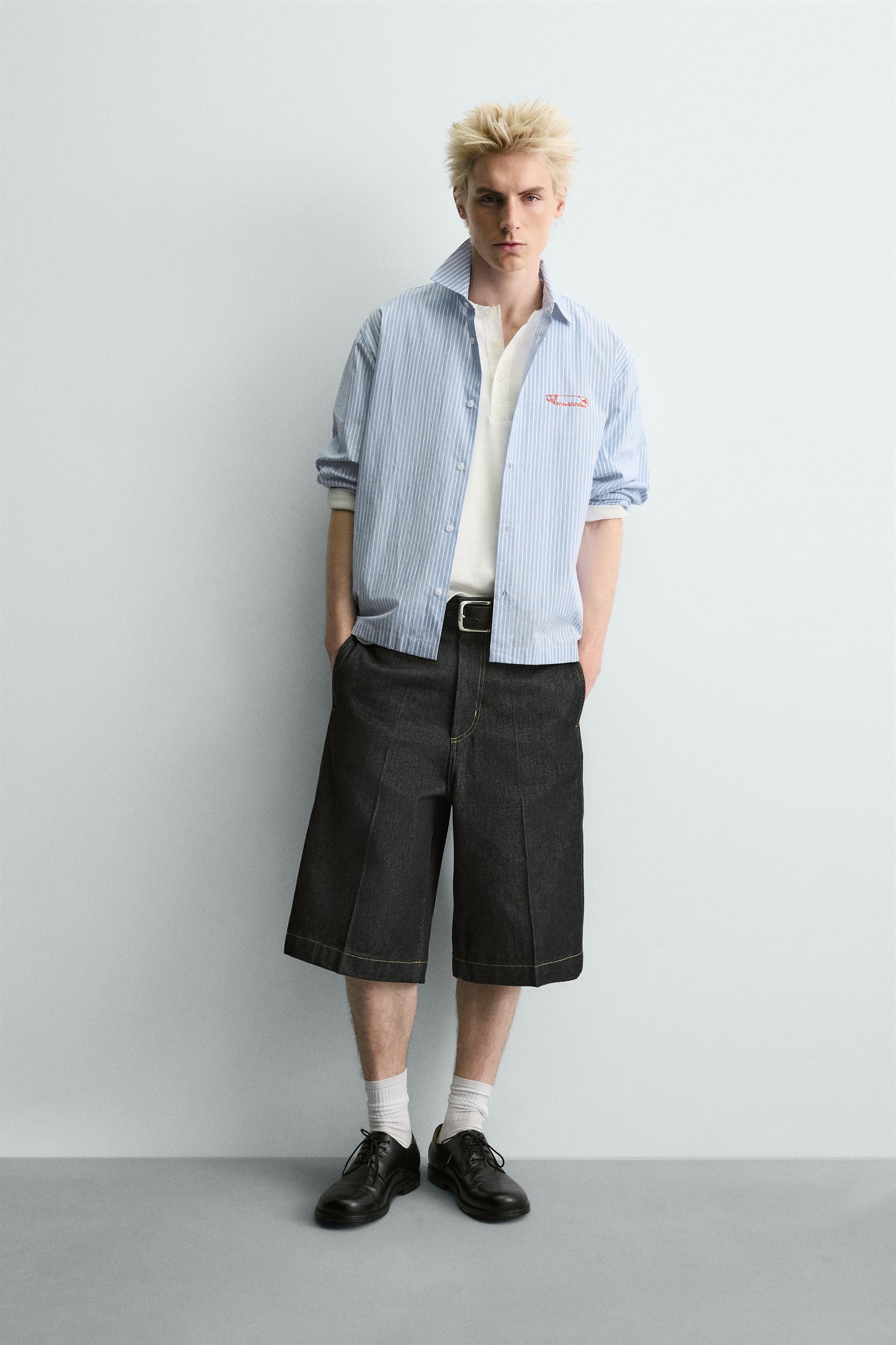 STRIPED SHIRT WITH SLOGAN PRINT