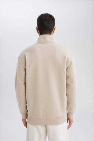 3 İplik Pamuklu Şardonlu İçi Polarlı Comfort Regular Fit Rahat Kalıp Dik Yaka Fermuarlı Kalın Sweatshirt