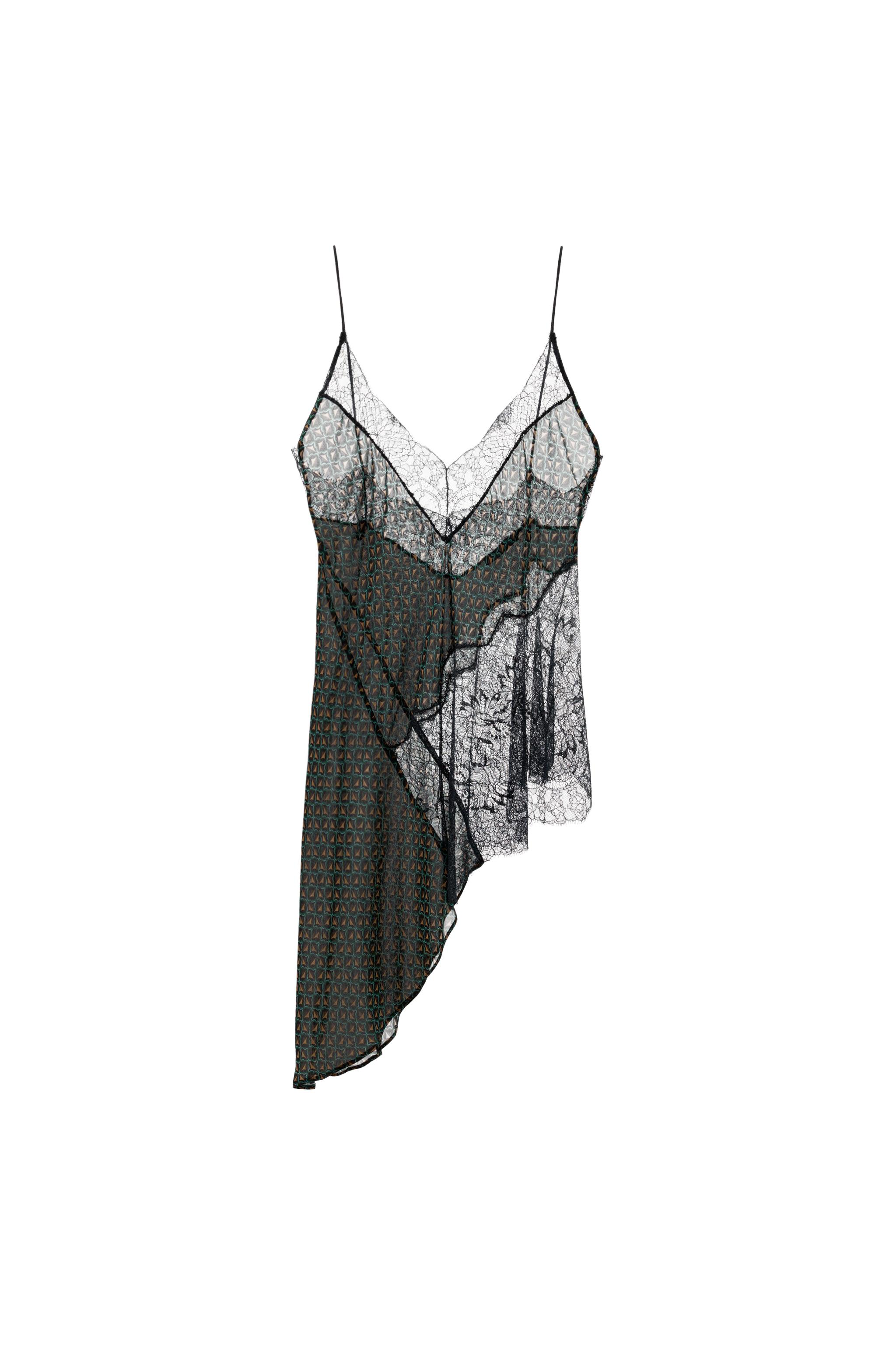ASYMMETRIC 100% VISCOSE PRINTED LACE TOP