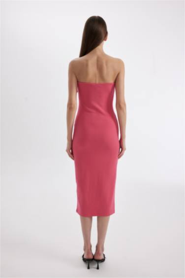 Bodycon Vücudu Saran Straplez Fitilli Kaşkorse Midi Abiye Elbise