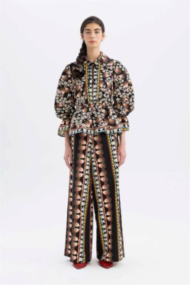 Lug Von Siga x DeFacto Oversize Desenli V Yaka Poplin Uzun Kollu Bluz