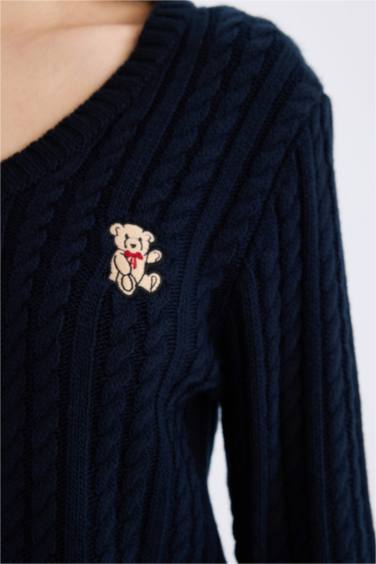 Slim Fit Dar Kesim Bisiklet Yaka Triko Kazak