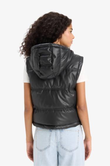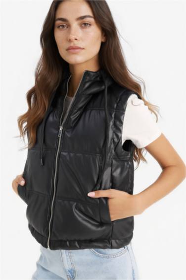 Regular Fıt Kapüşonlu Suni Deri Yelek — defacto | Oneri