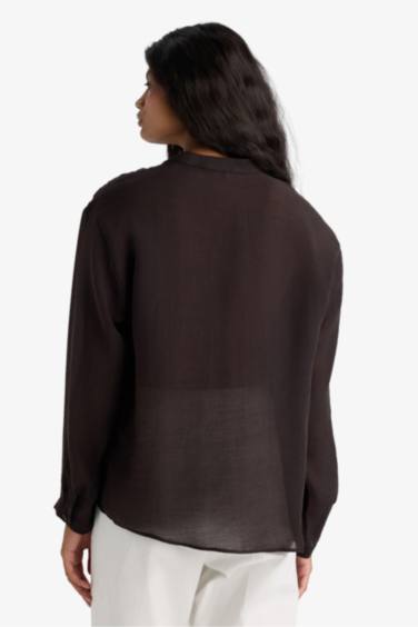 Oversıze Hakim Yaka Tencel Uzun Kollu Gömlek