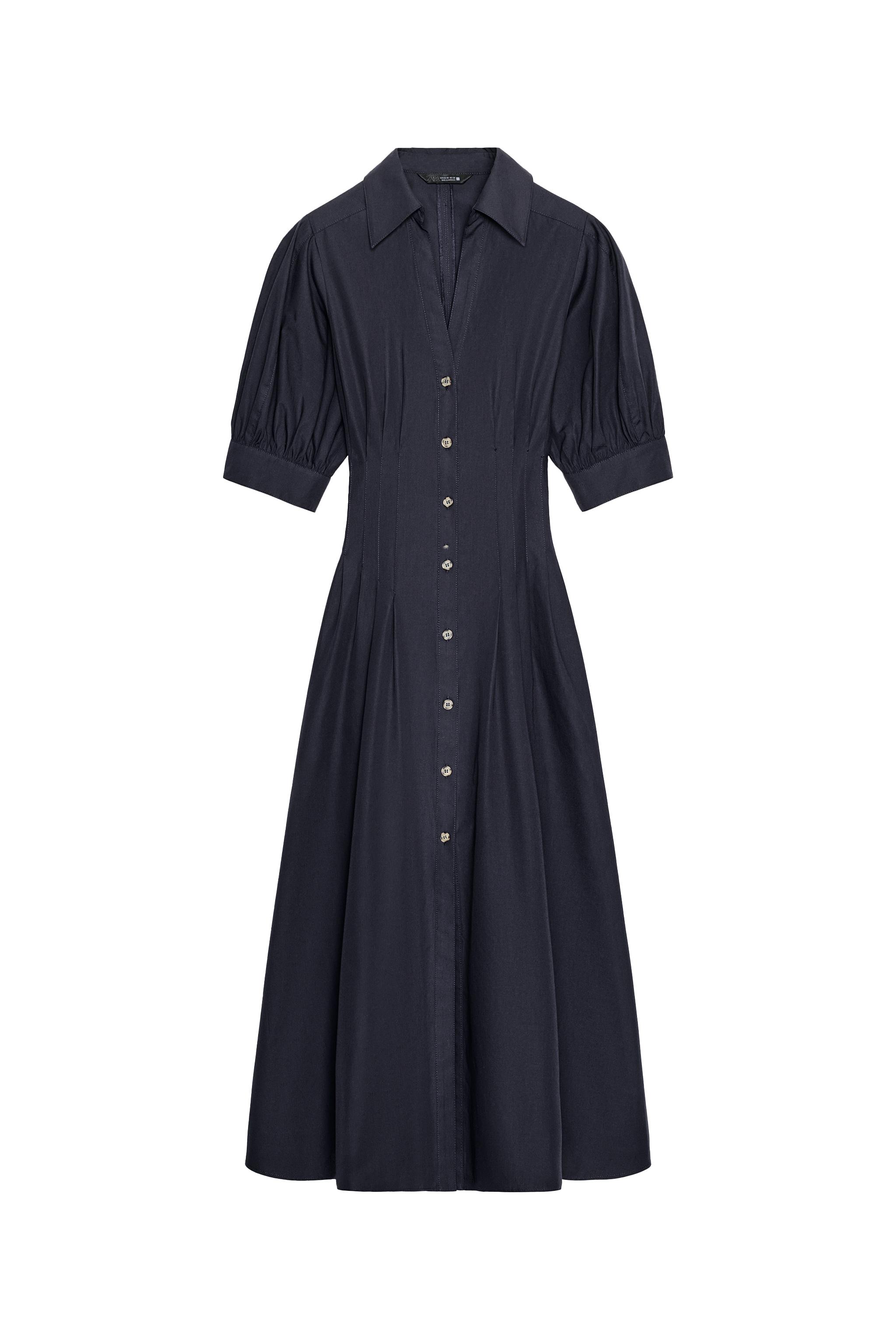 PUFF SLEEVE POPLIN MIDI DRESS