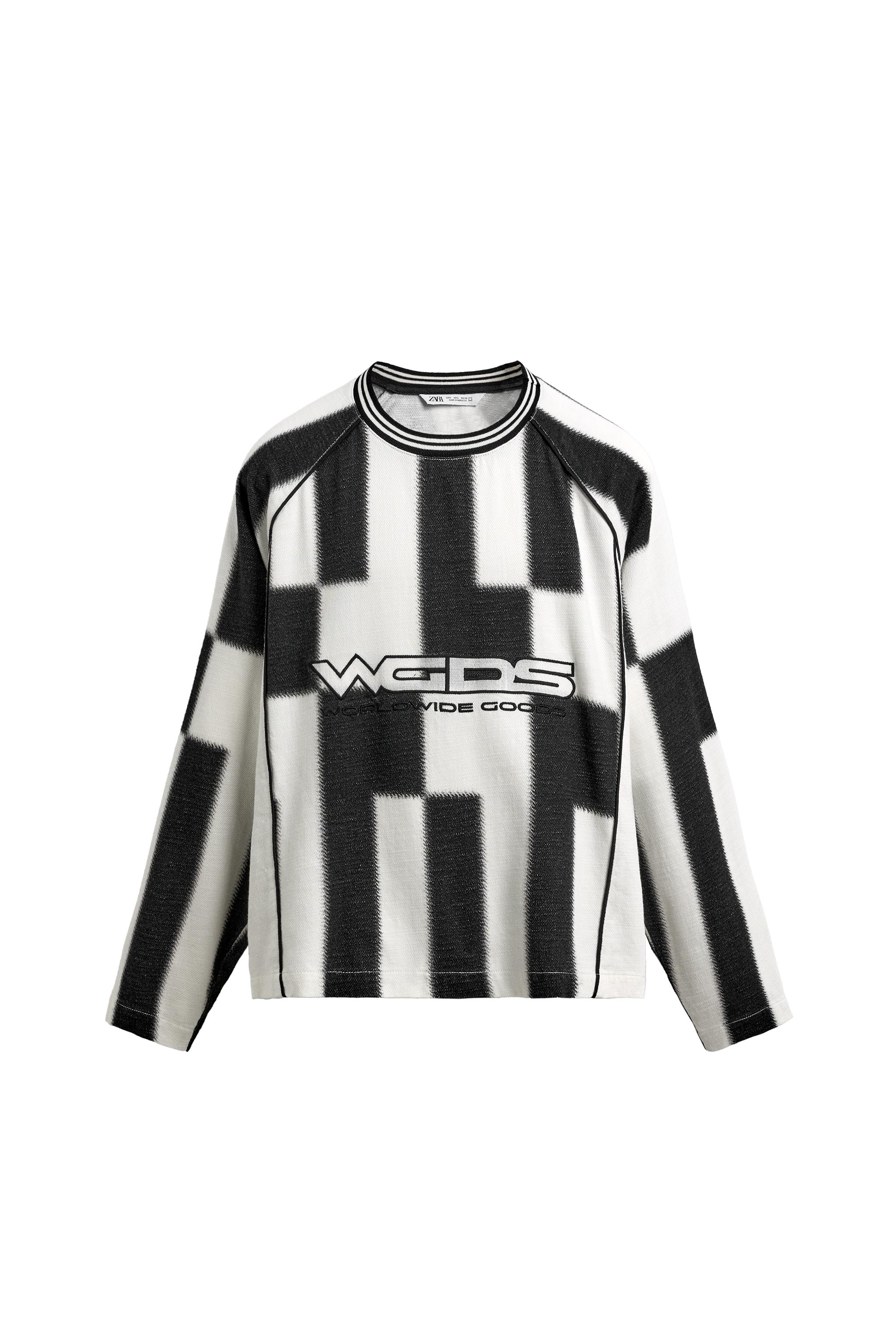DOKULU ÇİZGİLİ JAKARLI T-SHIRT