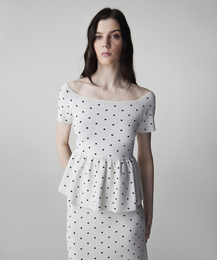 Puantiye desen peplum triko