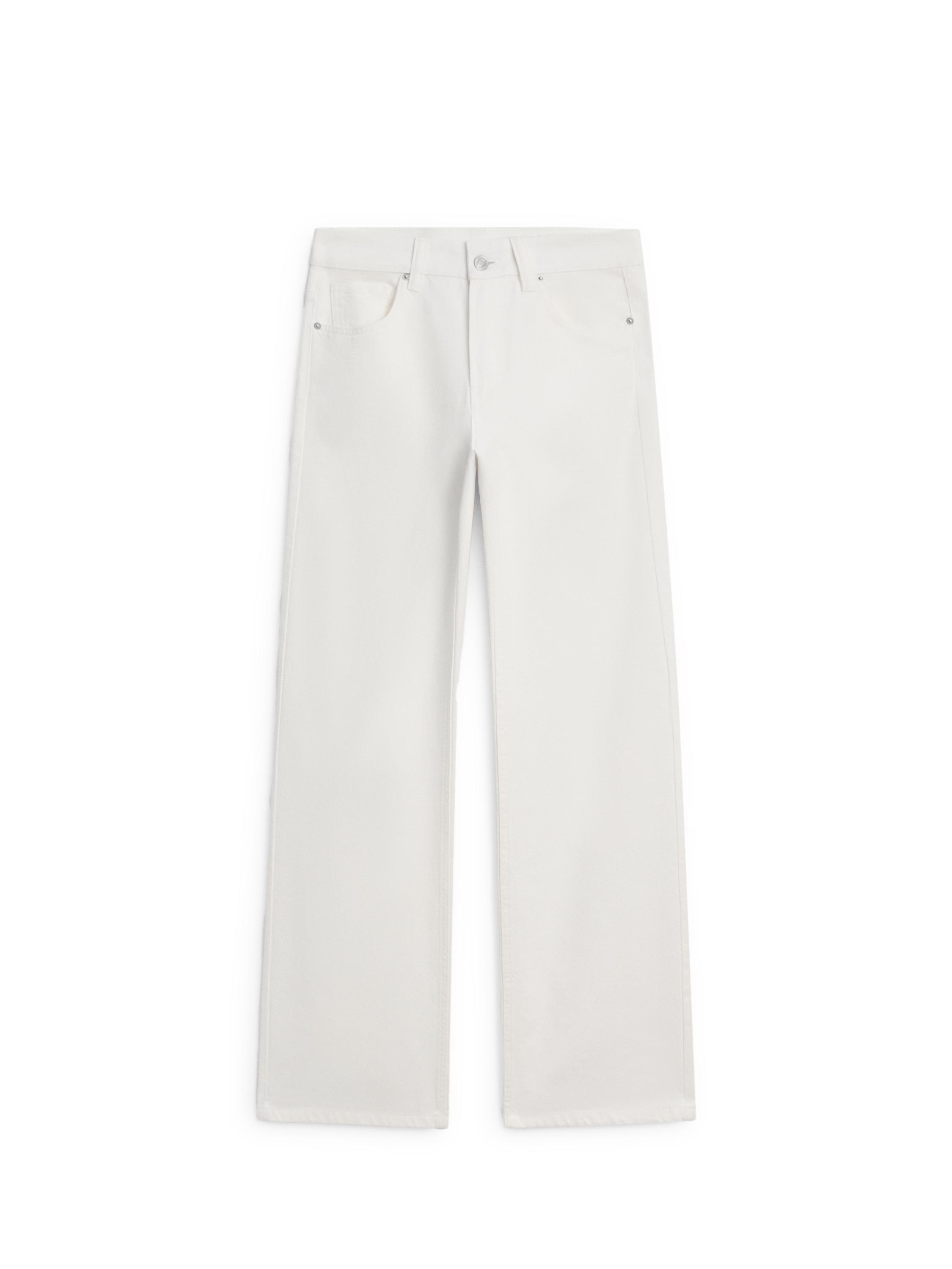 Beyaz rengi, klasik kesimi ve yüksek beliyle bu jean, temiz ve sade bir kıyafet parçası olarak dikkat çeker. Uzun govdeli tipler için idealdir çünkü vücut hatlarını dengeler ve uzunluğu gövdeyi daha dengeli gösterir. Günlük kullanım için çok uygun olup, ofis-sonrasi bulusmalarda veya hafif bir yemek gezisinde de rahatça giyilebilir. Beyaz tisort ve yüksek bel jean ile kombinleme en etkili seçeneklerden biridir; aynı zamanda açık mavi bluz ve deri ayakkabıyla da şık bir görünüm elde edilebilir. Siyah deri kemer ve beyaz sneaker ile tamamlayarak daha da minimalist bir look oluşturabilirsin. Katlanmadan asmali, nemli ortamlardan uzak tutmalı ve iki katlı kumağın dayanıklılığını korumak için dikkatli yıkamalısınız. İç katman olarak da kullanılabilir, kuru hava günlerinde hafif bir ceketle beraber rahatça giyilebilir.