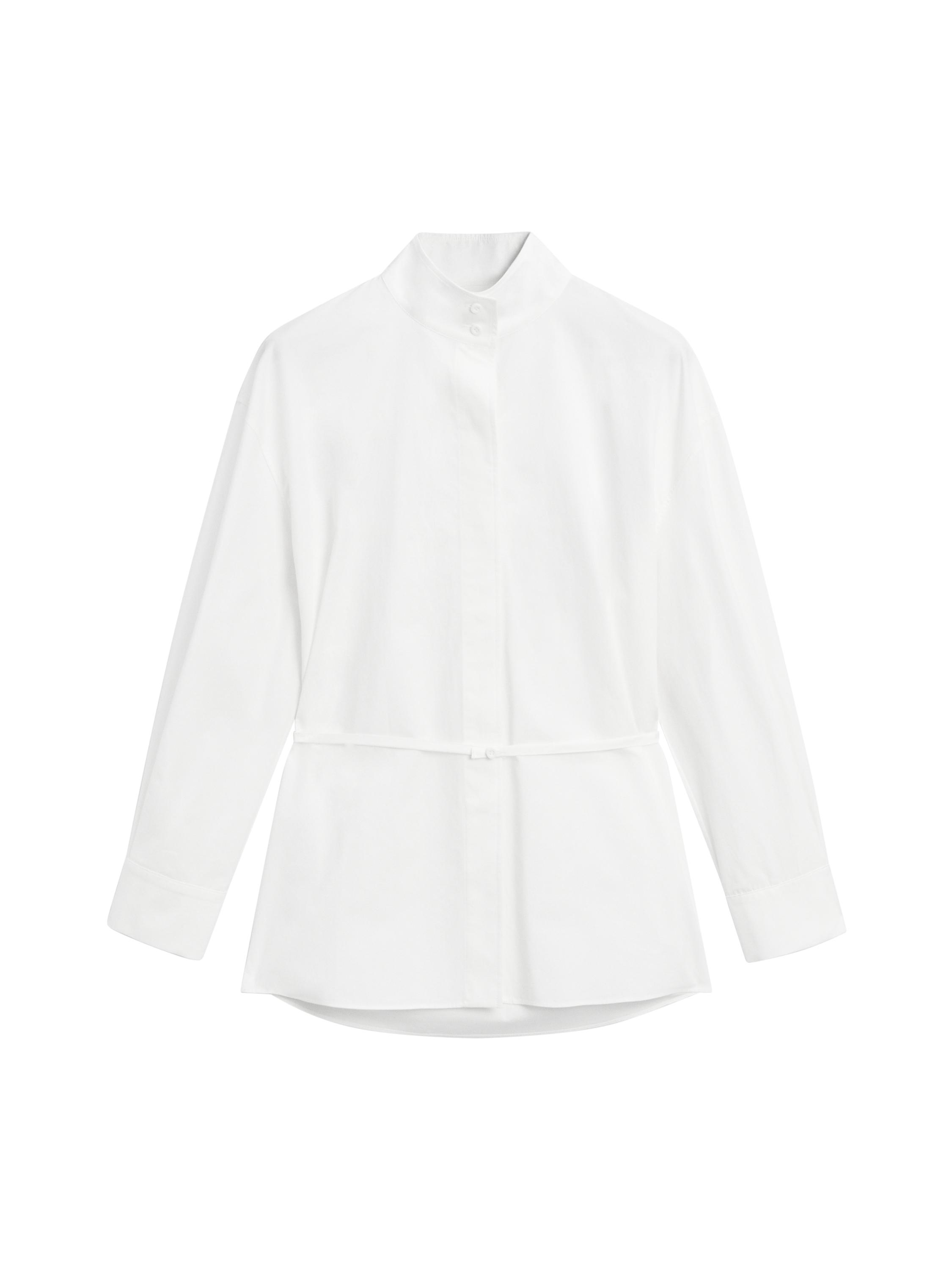 Bu gömlek, temiz hatlar ve az ama etkili detaylarla dikkat çeken bir klasik. Kayış detaylı yüksek yakası, giyimde hafif bir vurgu sunarken, sade beyaz rengi onu her zaman uygun bir temel haline getiriyor. Uzun govdeli tipler icin idealdir; omuz hizasindan başlayarak uzun cizgiler yaratir ve vucudun dengesini saglar. Geceleri veya ofis-sonrasi bulusmalarda, bir blazerin altina veya bir kot pantolonun üzerine kolayca yerlestirilebilir. Beyaz tisortle ve yuksek bel jean ile kombinleme, gundelik bir stili tamamlarken, siyah deri kemer ve beyaz sneaker ile de daha dinamik bir gozum verir. Kati olmayan bir kumaş oldugundan, katlanmadan asmali ve iki katli olarak da kullanilabilir. Yemeklerde, sinavlarda veya basit bir park yürüyüsünde her an uygun olur.