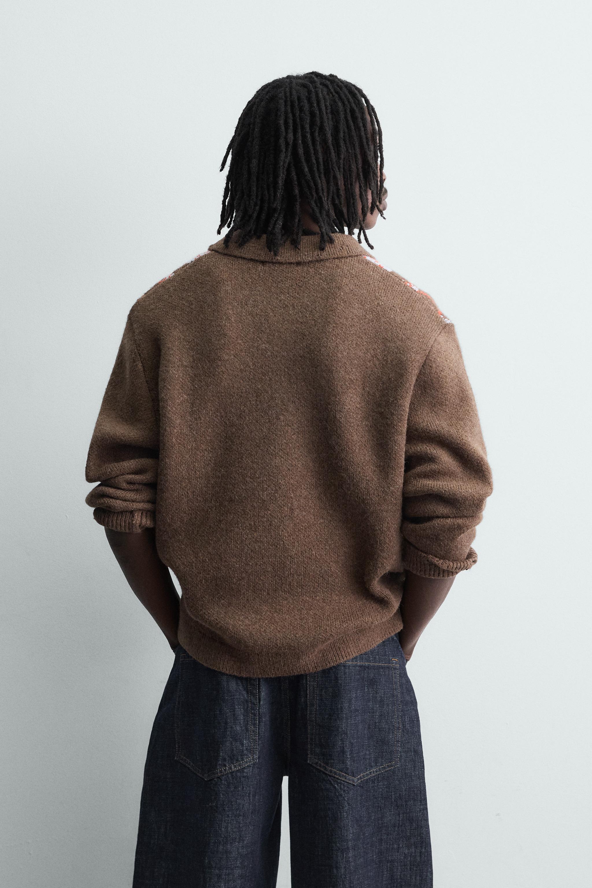 KNIT ARGYLE POLO SHIRT WITH RIPPED EFFECT