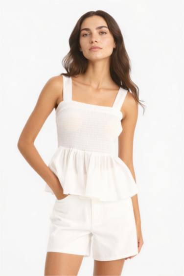 %100 Pamuk Cepli Beyaz Gabardin Şort
