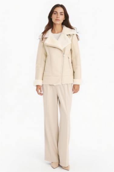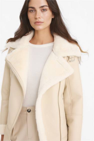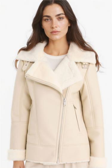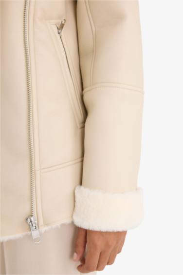 Su Geçirmez Oversıze Suni Kürk Astarlı Fermuarlı Mont