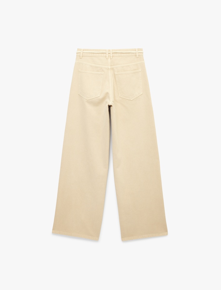 Pamuklu Normal Bel Kemerli Geniş Paça Pantolon - Wide Leg Jeans