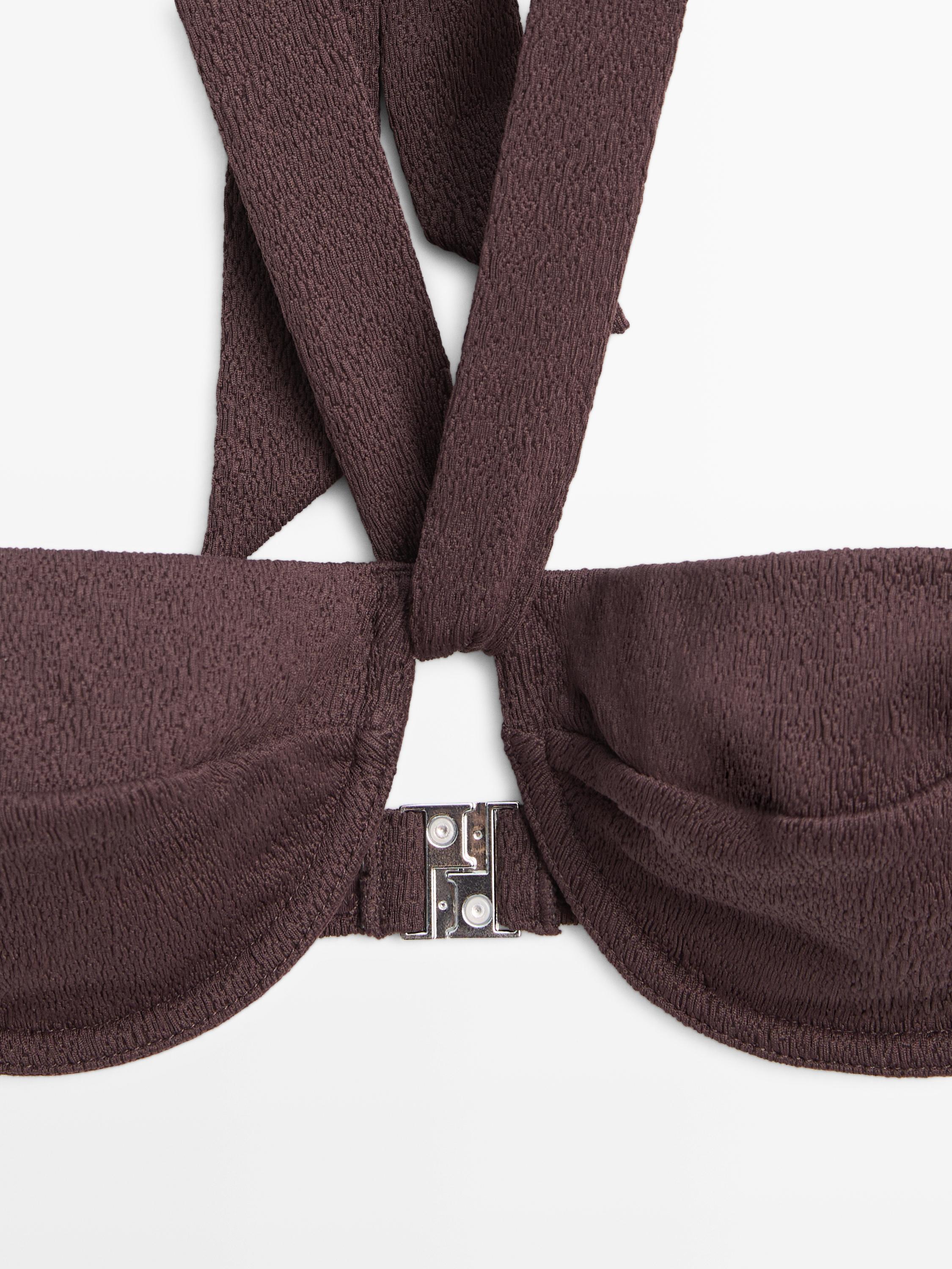 Balenli dokulu, boyundan bağlamalı bikini üstü