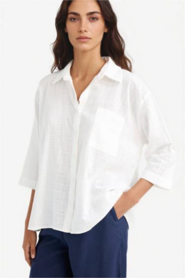 Oversize Geniş Kalıp Pamuklu Kısa Kollu Gömlek