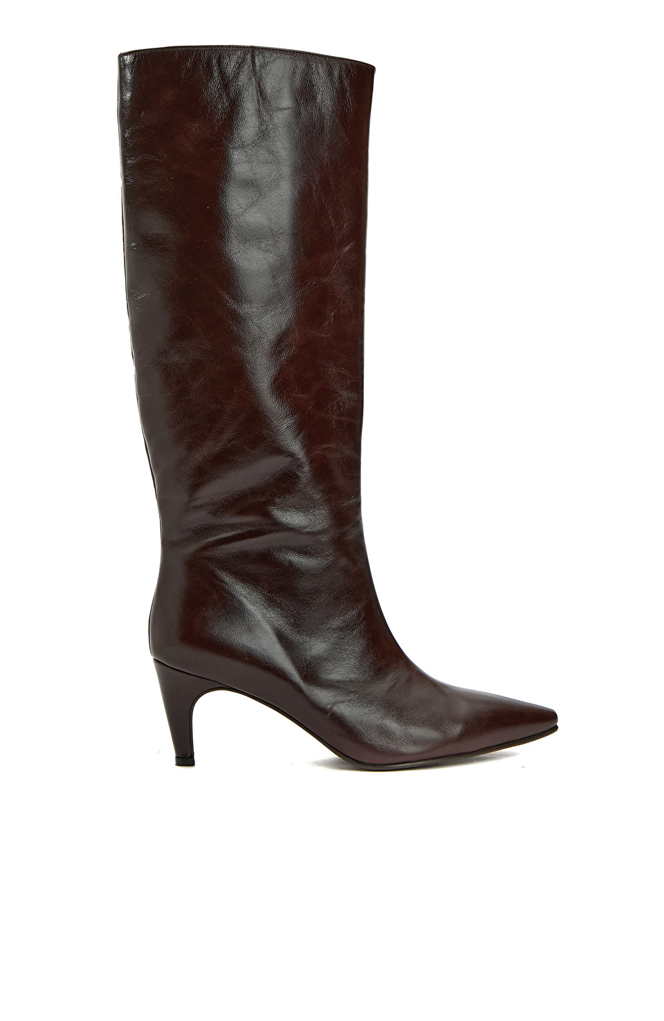 Kahverengi deri çizme, temiz ve dengeli bir klasikte yer alır. Kolları hafif yuvarlak ve ayak parmakları rahatça yerleşebilen bu model, günlük kullanım için idealdir. Uzun gövdeli tipler için özellikle uygun olup, vücut hatlarını doğal bir şekilde vurgular. Kombinleme açısından hem ofis-sonrasi bulusmalarda hem de sonbahar aksam yürüyüşlerinde etkili olur. Beyaz tisörtle ve yüksek bel jeans ile kombinleme yaparsanız, modern ve şık bir görünüm elde edersiniz. Aynı zamanda siyah renkli bir kot pantolonla da çok zarif bir look oluşturabilirsiniz. Aksesuar olarak siyah deri kemer ve beyaz sneaker ile tamamlayabilirsiniz. Çizmeyi katlanmadan asmalı, nemli ortamlardan uzak tutmalı ve düzenli olarak bakmalı. İç katman olarak da giyilebilir, kış mevsiminde ekstra ısıya katkı sağlar.