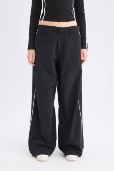 Wide Leg Geniş Bol Paça Cepli Şerit Detaylı Normal Bel Pantolon