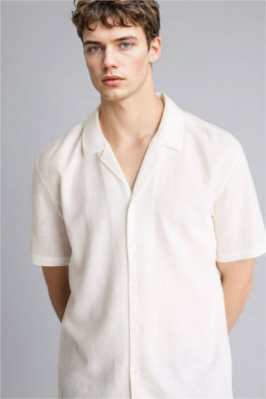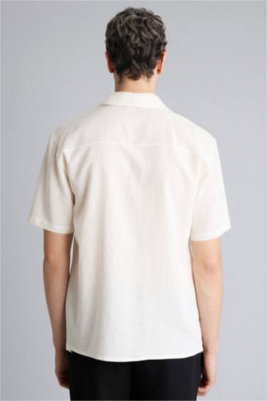 Polo Yaka Keten Karışımlı Kısa Kollu Gömlek