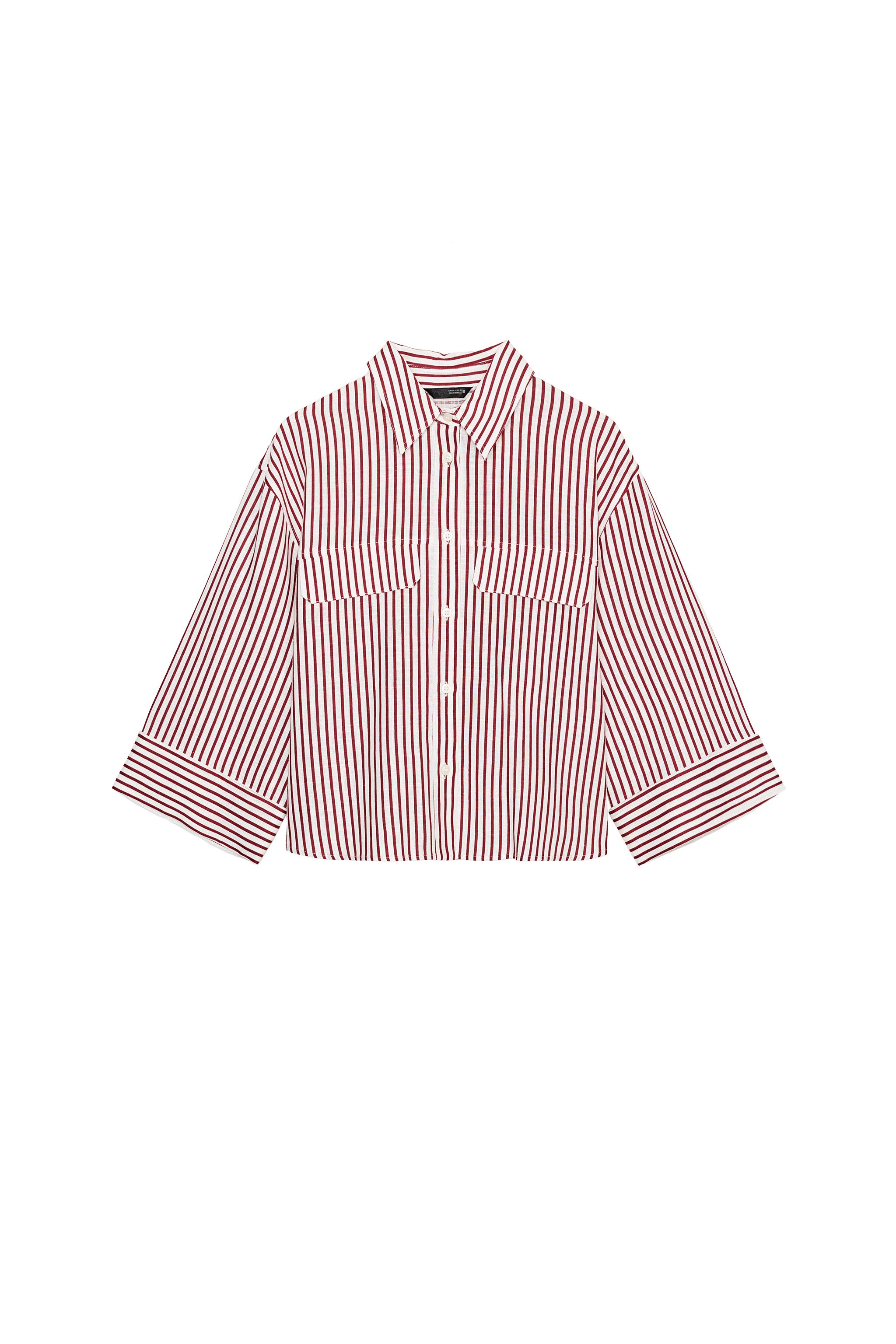 KETEN KARIŞIMLI ÇİZGİLİ GÖMLEK