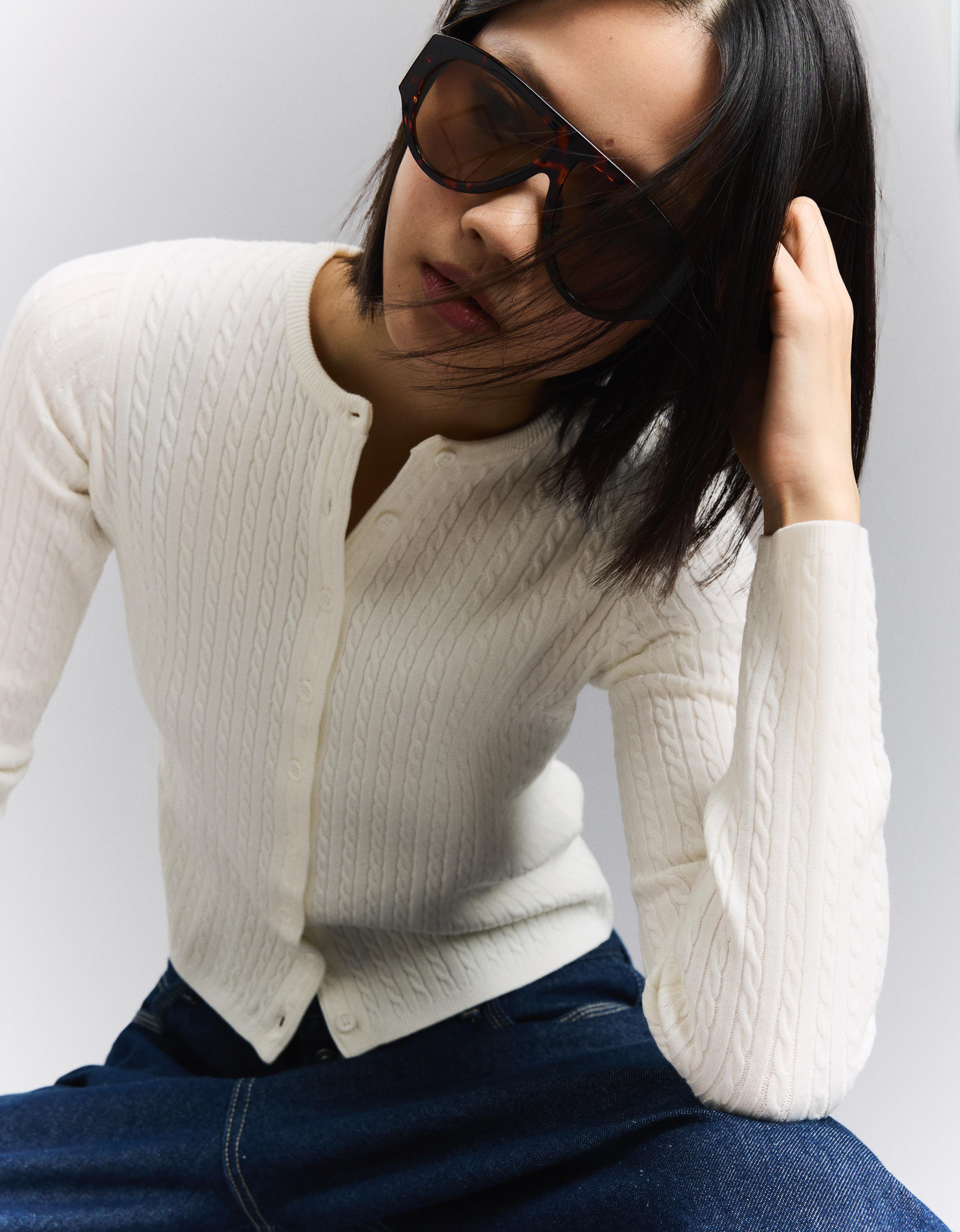 Klasik minimalizmle buluşan bu örgü detaylı hırka, temiz hatları ve sade yapısıyla kapsul gardirop için mükemmel bir ek. Krem veya mavi renk seçenekleri, notr tonlara sahip kıyafetlerle kolayca uyum sağlar. Uzun gövdeli tipler için idealdir; omuz hatlarını dengeli bir şekilde vurgular. Kahve içme günlerinde ya da ofis-sonrasi bulușmalarda, beyaz tisörtle ve yüksek bel jeans ile kombinleme yapabilirsin. Aynı zamanda siyah deri kemer ve beyaz sneaker ile tamamlayarak daha dinamik bir hale getirebilirsin. Soğuk günlerde iç katman olarak da kullanılabilir; koltuk altı kısmında yer alan örgü detay, giysinin sade görünümünü bozmadan estetik bir dokunuş sunar. Katlanmadan asmalı, nemli ortamlardan uzak tutmalı.