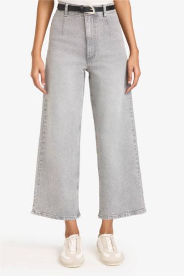 Culotte Yüksek Bel Düz Paça Uzun Jean Kar Yıkamalı Pantolon