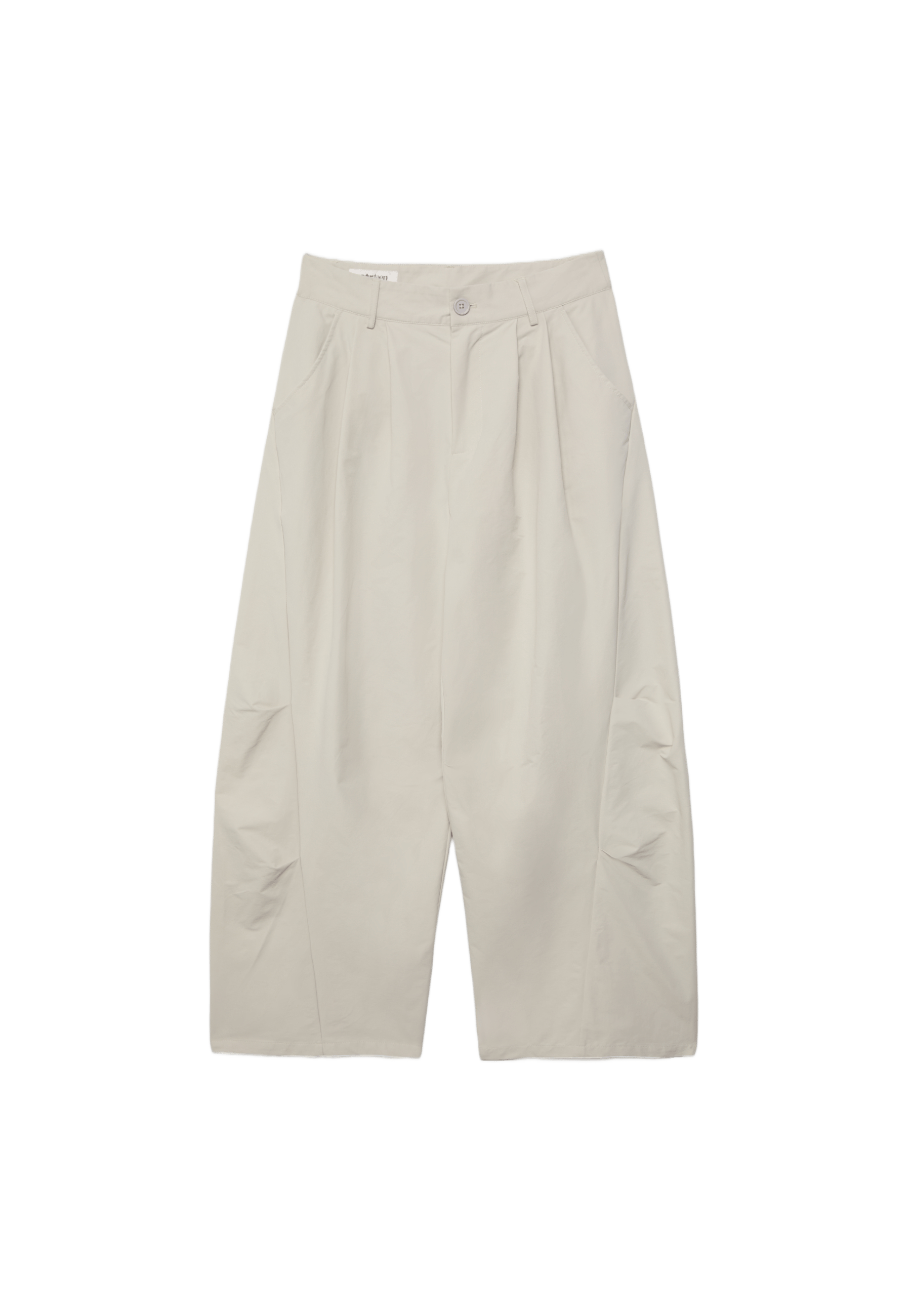 Beige ve off-white tonlarında, zarif bir klasik havası taşıyan bu barrel kumaş pantolon, minimalist anlayışa uygun, her gün giyilebilecek bir parçadır. Uzun gövdeli tipler için idealdir; kalın kemerle vücut hatlarını belirgin hale getirebilirsiniz. Kısa boy veya orta boylu bireyler için ise geniş kesimi rahatlatıcı etki yaratır. Yazın açık renkli bir bluzla veya sonbaharda bir pullu montla kombinlenebilir. Beyaz tisört ve yüksek bel jeans ile casual bir look oluştururken, siyah deri kemer ve beyaz sneaker ile daha şık bir görünüm elde edebilirsiniz. Kuru temizleme önerilir; katlanmadan asılı tutulması kumaşın şeklini korur. İç katman olarak da kullanılabilir, dörtlük veya uzun kollu bir bluzla eşleştirildiğinde hem estetik hem de pratik bir seçenek sunar.