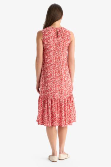 Regular Fit Çiçek Desenli Bisiklet Yaka Kolsuz Midi Yazlık Elbise