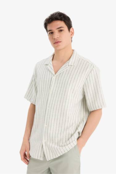 Relax Fit Apaş Yaka Kısa Kollu Yazlık Çizgili Gömlek