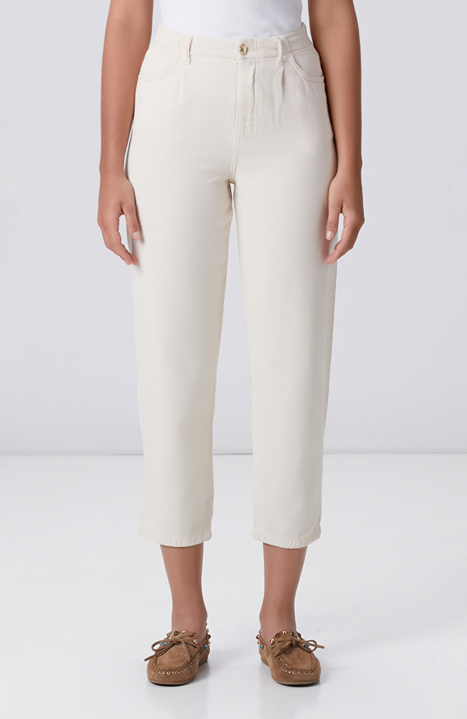 Kırık Beyaz Tencel Karışımlı Casual Pantolon